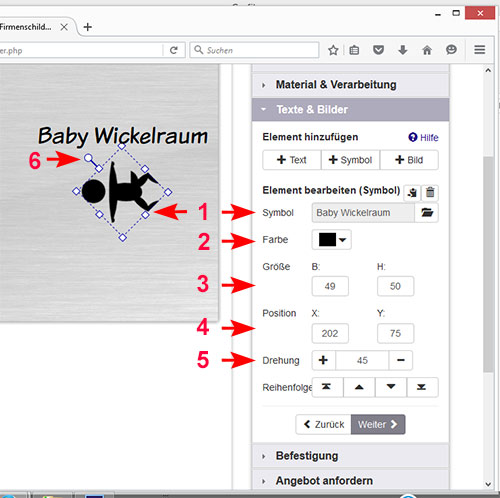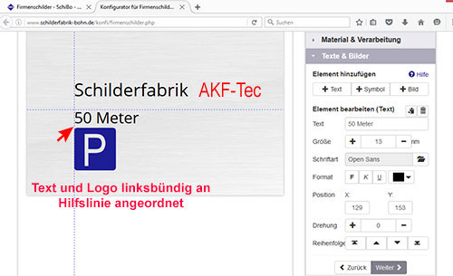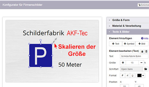 1) Größe des Schildes festlegen (kann auch wieder geändert werden)