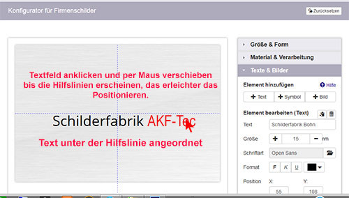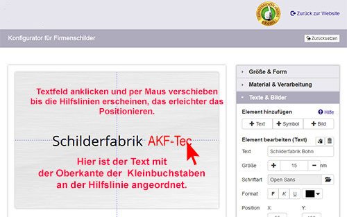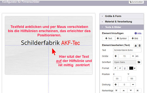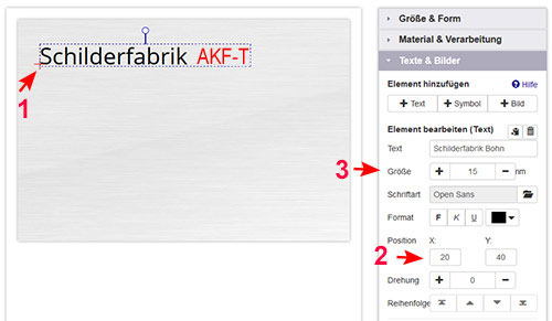 Schriftart, Größe des Textes sowie dessen Position können genau festgelegt werden.