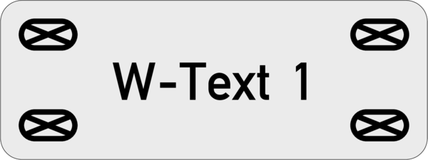 Gravurschild 40x15x1,0mm, Alu silber matt, Ecken R2, 4 Langlöcher 5x2,5 mm, Rand-Lochrand 2,0mm, 1-zeilig, Graur schwarz