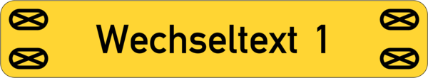 Schild 60x11x1,5 mm, Kunststoff gelb, Ecken R 2 mm, 4 Langlöcher 5x2,5 mm, Text schwarz herausgraviert,