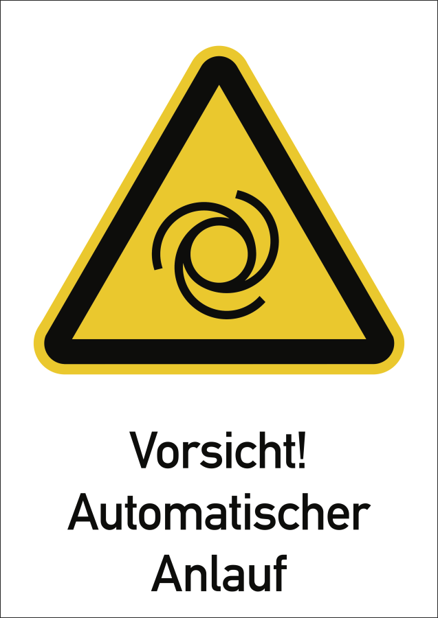 Vorsicht! Automatischer Anlauf ISO 7010, Kombischild, Alu, 262x371 mm