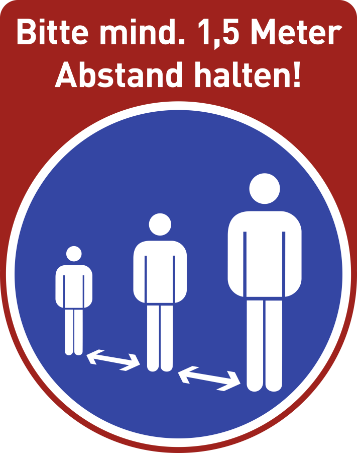 Text: Bitte mind. 1,5 Meter Abstand halten!