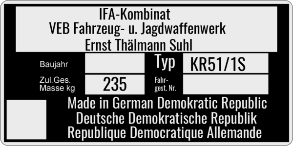 Reproduktion Typenschild für SIMSON Schwalbe KR51/1S