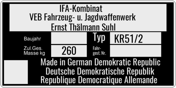 Reproduktion Typenschild für SIMSON Schwalbe KR51/2