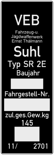 Typenschild Reproduktion Simson Suhl Moped SR2E