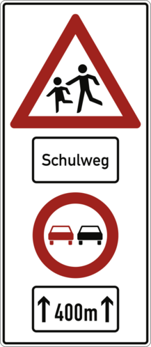 Kinder, Schulweg, Überholverbot, Alu 3 mm, RA2, 730x1690 mm