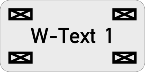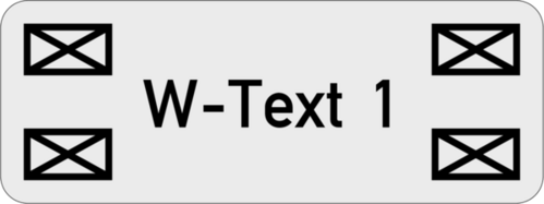 Schild 40x10x1,0 mm, Alu silber matt, Ecken R 2 mm, 4 Aussparungen 4,5x2,0 mm, Text schwarz herausgraviert,
