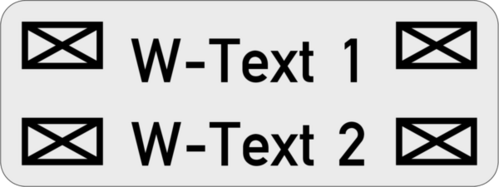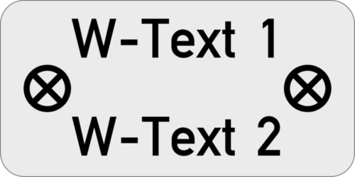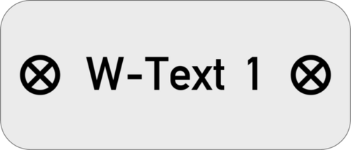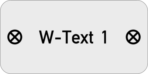 Gravurschild 40x15x1,0mm, Alu silber matt, Ecken R2, 4 Langlöcher 5x2,5 mm, Rand-Lochrand 2,0mm, 2-zeilig, Graur schwarz