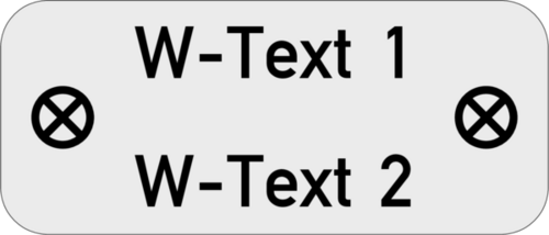 Gravurschild 40x15x1,0mm Alu silber matt, Ecken R2 gerundet, 4 Aussparungen 6x3 mm, Rand-Lochrand 2,0 mm, 2-zeilig,Gravur schwarz