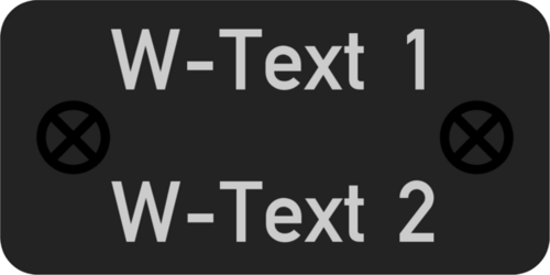 Gravurschild 30x20x1,0 mm , Ecken gerundet R2, 2 Bohrungen 3,5 mm, Rand-Lochmitte 4,0mm, 2-zeilige Gravur schwarz ausgelegt