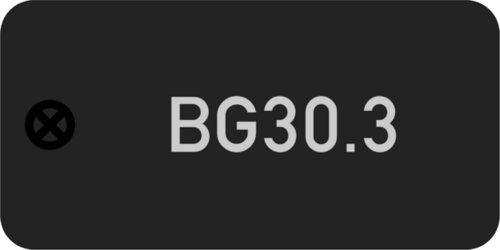 Gravurschild 30x15x1,0 mm , Ecken gerundet R2, selbstklebend 3M467, 2-zeilige Gravur schwarz ausgelegt